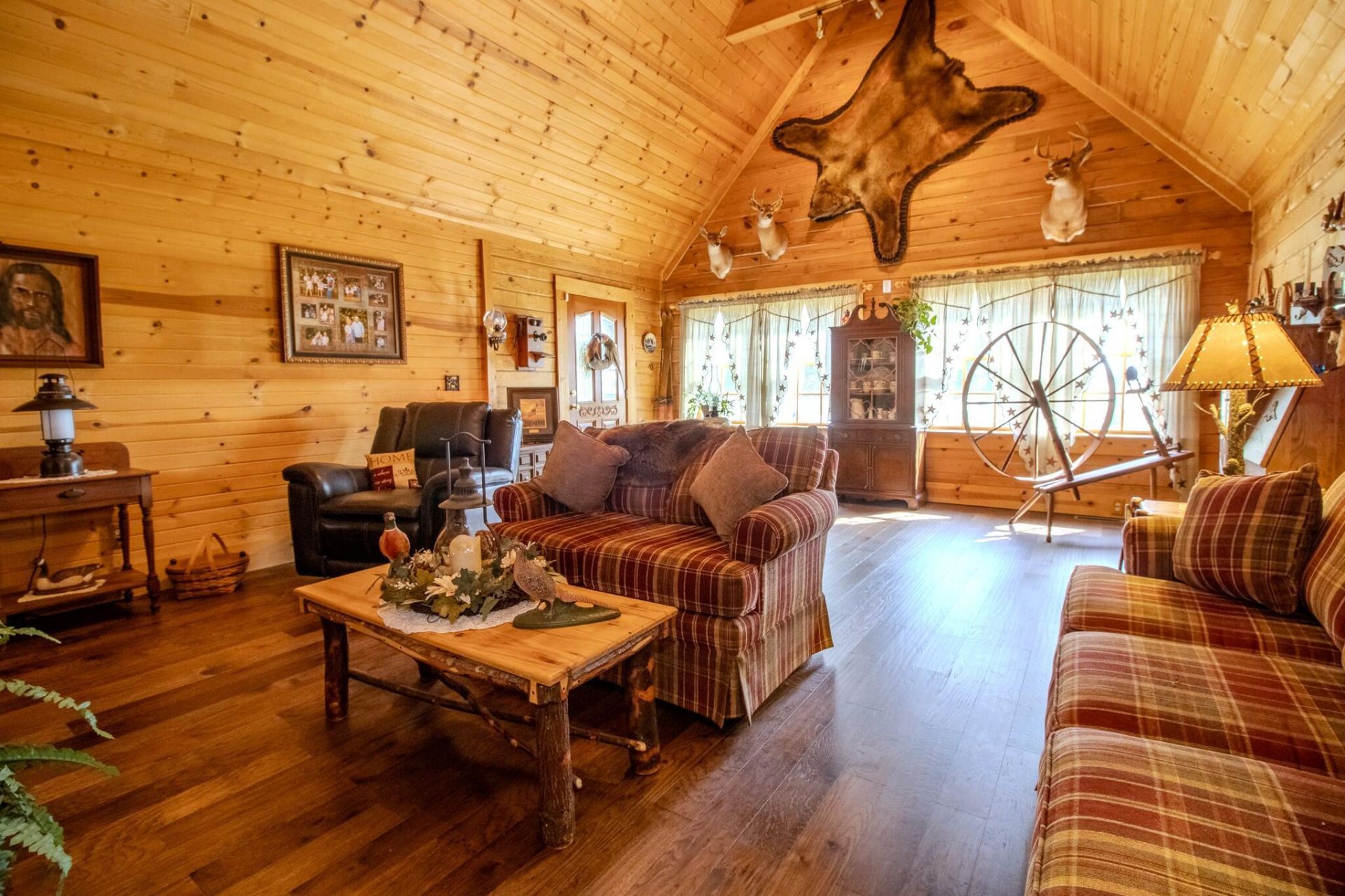 INDREDIBLY WELL MAINTAINED LOG HOME IN THE COUNTRY - Move-in ready 3-4BR, 2.5 bath home. Log cabin feel with modern conveniences and updates throughout. Stunning cathedral living area with Stone fireplace and plenty of windows for natural light. Eat-in kitchen with newer built-in appliances and custom wood countertops. Main floor master suite with 4pc bath and walk-in closet. Lower level family room and tons of additional storage. Newer HVAC, roof and much more. Huge screened porch overlooking the stunning 2 Acre landscaped/partially wooded property. Newer inground pool. Massive 30' X 48' high-ceiling heated garage/shop featuring separate 200A electric, work bench and overhead doors along with enclosed lean-to and covered porch. Peace and quiet, but less than 5 minutes from US 30. Unbeatable setting with beautiful views and no visible neighbors on 700 E.